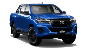 Blue Toyota Hilux petrol ute.
